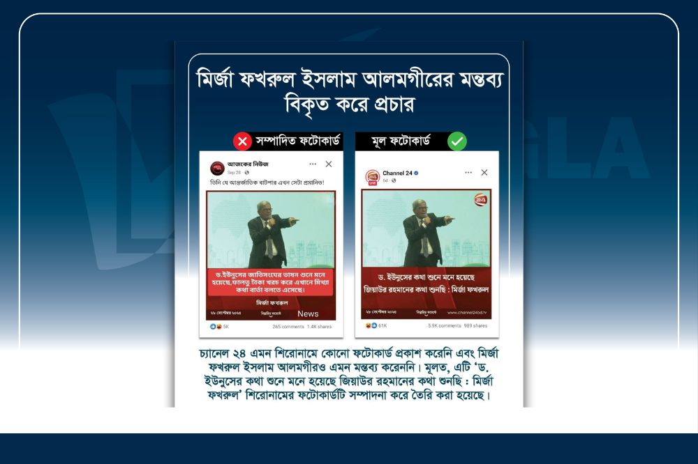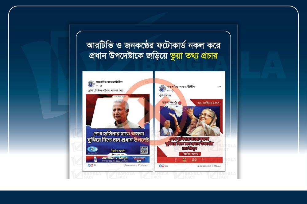 আরটিভি ও জনকণ্ঠের ফটোকার্ড নকল করে প্রধান উপদেষ্টাকে জড়িয়ে...