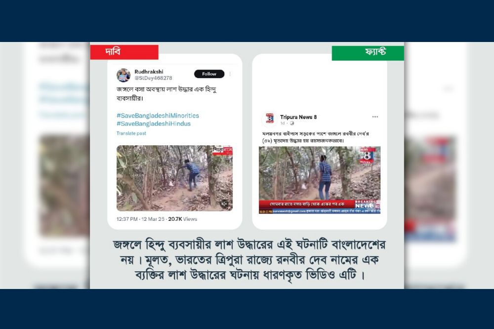 ভারতের ত্রিপুরা রাজ্যে এক ব্যক্তির লাশ উদ্ধারের ঘটনাকে বাংলা...