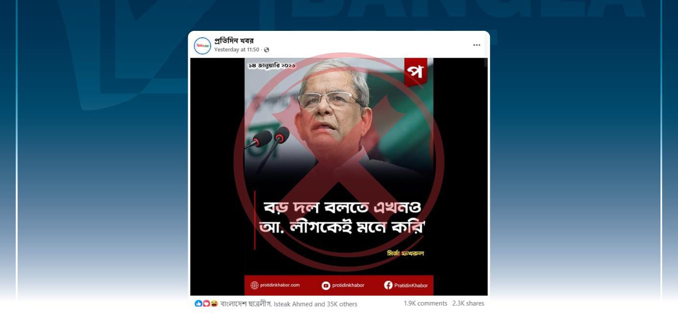 নিষিদ্ধ আওয়ামী লীগের সঙ্গে মির্জা ফখরুলকে জড়িয়ে বিভ্রান্তিকর মন্তব্য প্রচার