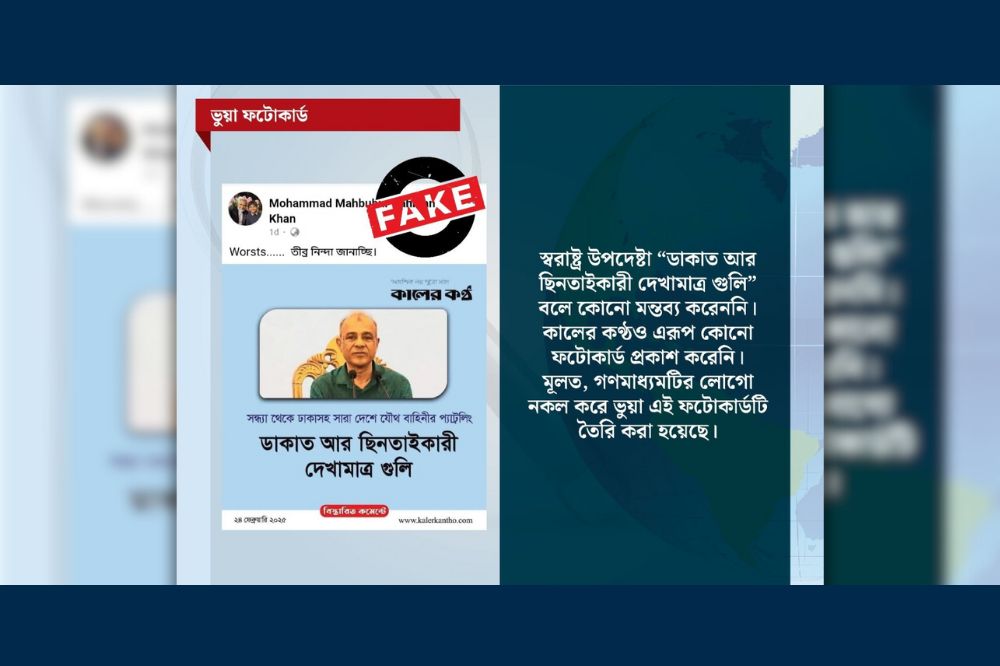 আলোচিত এই ফটোকার্ডটি ভুয়া বলে কালের কণ্ঠ নিশ্চিত করেছে