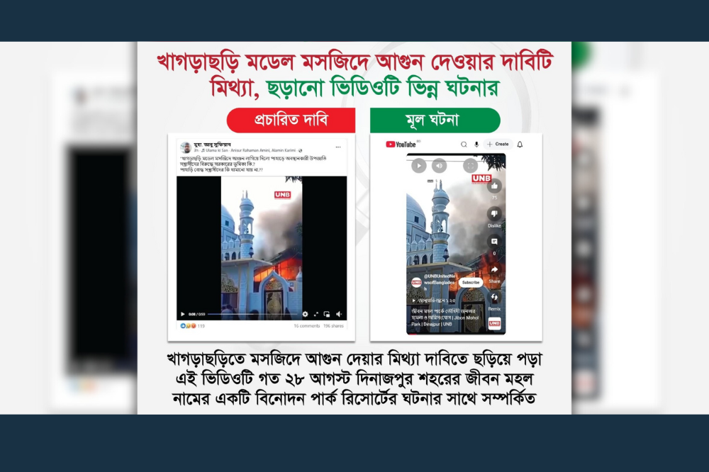 খাগড়াছড়ি মডেল মসজিদে আগুন দেওয়ার দাবিটি মিথ্যা, ভিডিওটি ভিন্ন ঘটনার