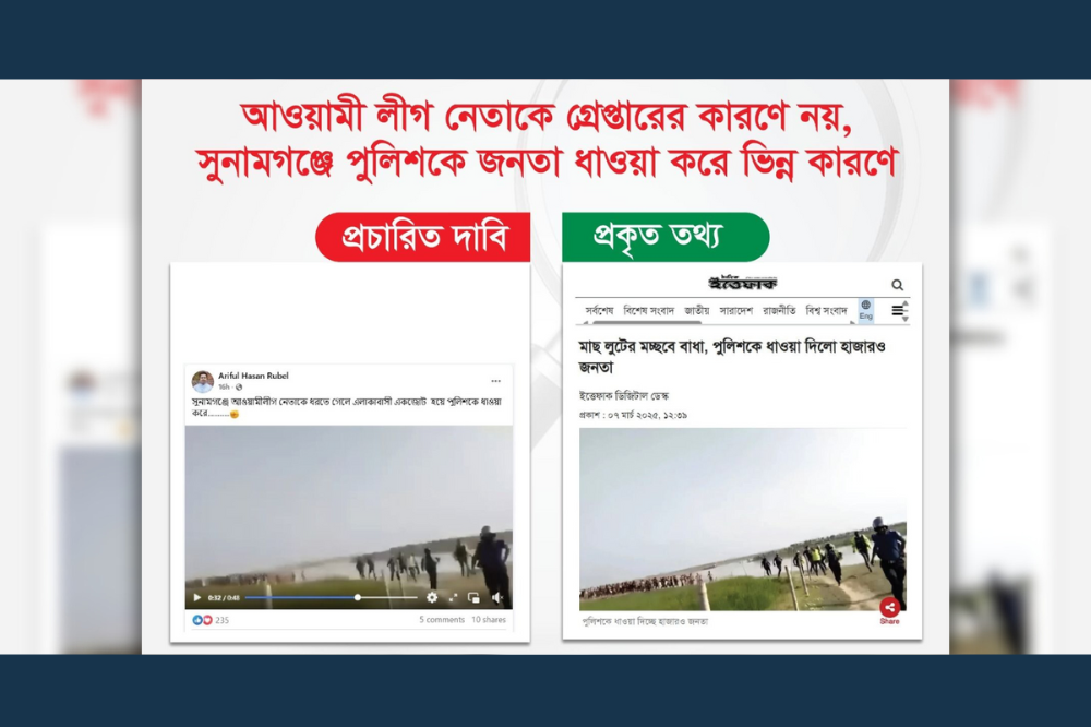 আওয়ামী লীগ নেতাকে গ্রেপ্তারের কারণে নয়, সুনামগঞ্জে পুলিশকে জনতা ধাওয়া করে ভিন্ন কারণে