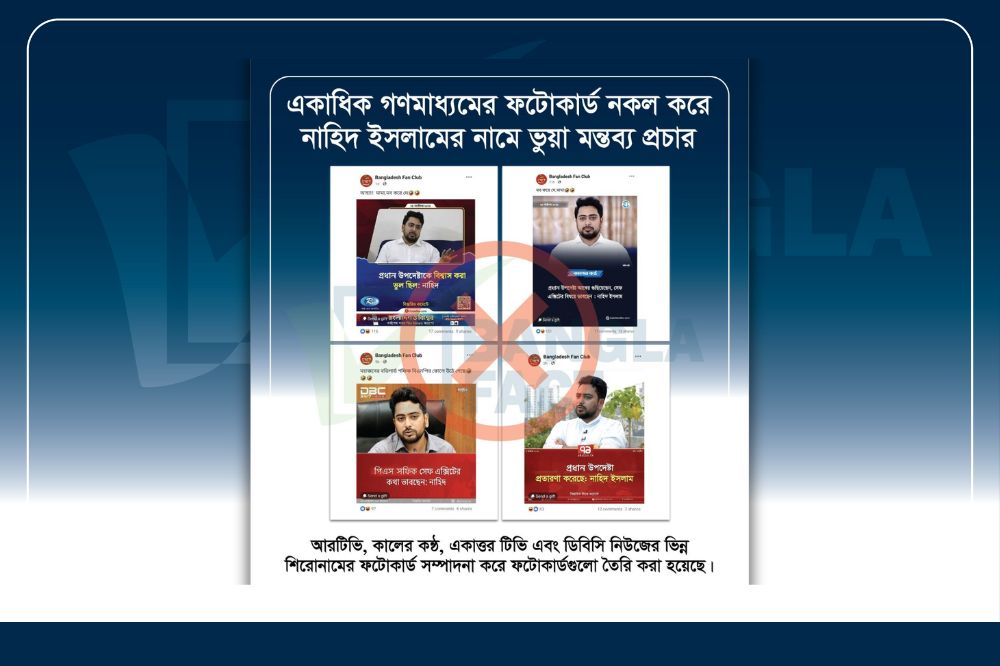 একাধিক গণমাধ্যমের ফটোকার্ড নকল করে নাহিদ ইসলামের নামে ভুয়া মন্তব্য প্রচার