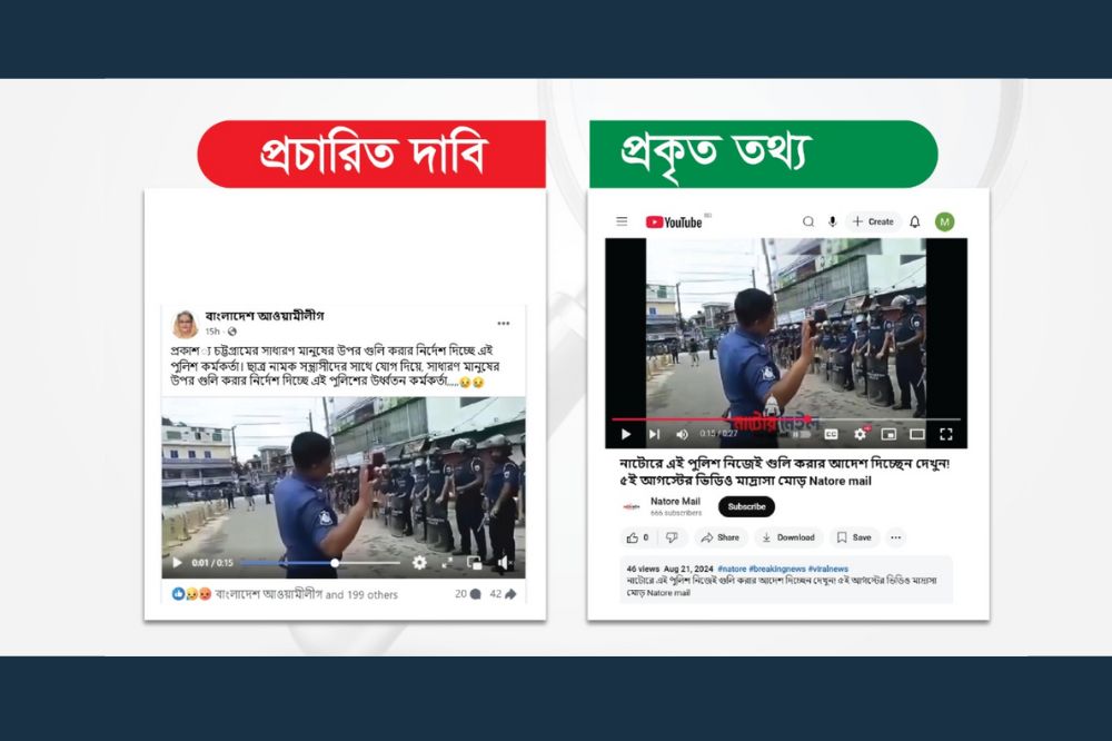 সাধারণ মানুষের ওপর পুলিশের গুলির নির্দেশ দাবি করে ছড়ানো ভিডিওটি চট্টগ্রামের নয়, পুরোনো এবং ভিন্...