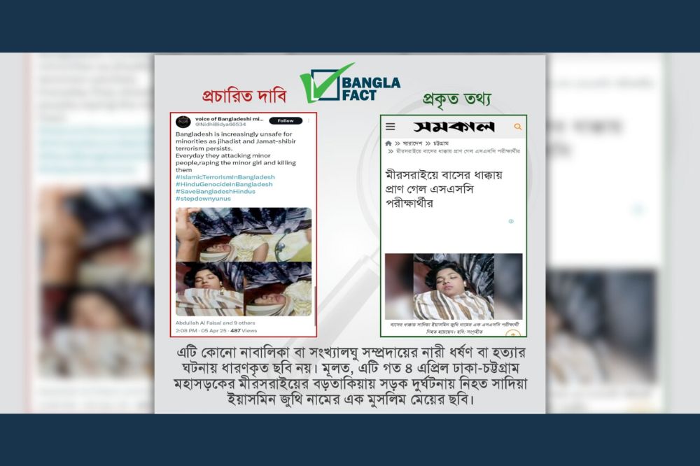 সড়ক দুর্ঘটনায় মুসলিম মেয়ে নিহত হওয়ার ঘটনাকে নাবালিকা ও সংখ্যালঘু সম্প্রদায়ের মেয়ে ধর্ষণ ও হত্যা...