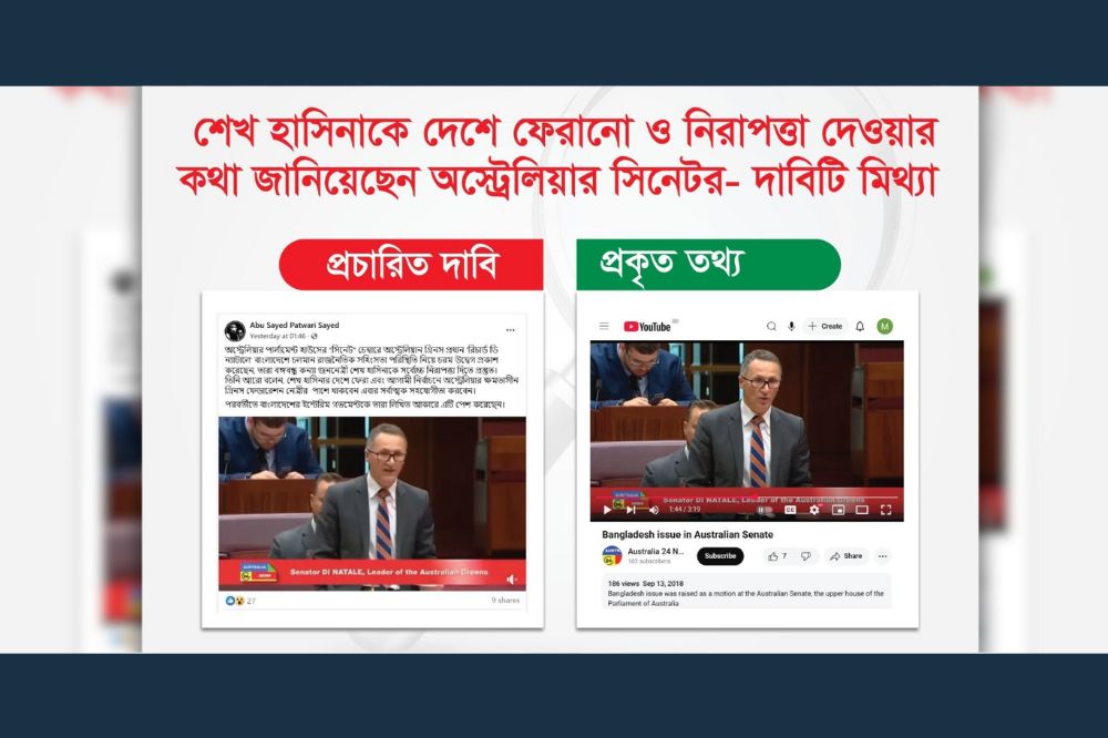 শেখ হাসিনাকে দেশে ফেরানো ও নিরাপত্তা দেওয়ার কথা জানিয়েছেন অস্ট্রেলিয়ার সিনেটর- দাবিটি মিথ্যা