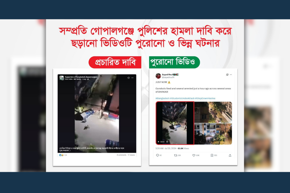 সম্প্রতি গোপালগঞ্জে পুলিশের হামলা দাবি করে ছড়ানো ভিডিওটি পুরোনো ও ভিন্ন ঘটনার