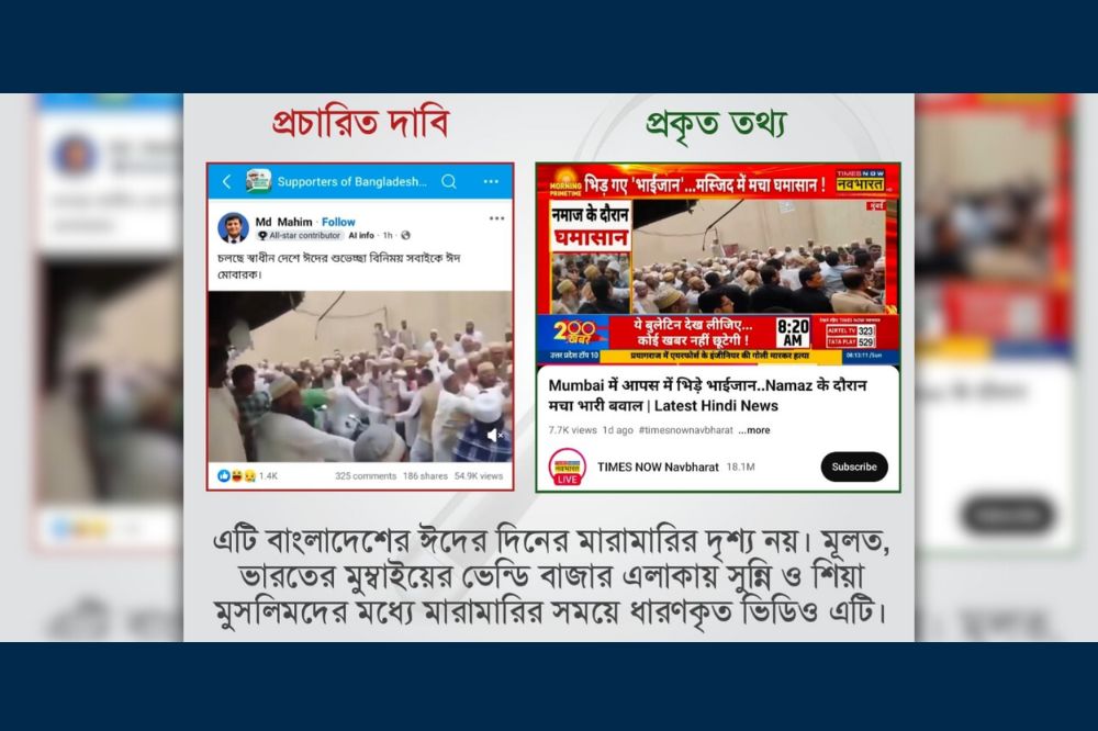 বাংলাদেশে ঈদের দিনে মুসল্লিদের মারামারির দৃশ্য দাবিতে ভারতের ভিডিও প্রচার