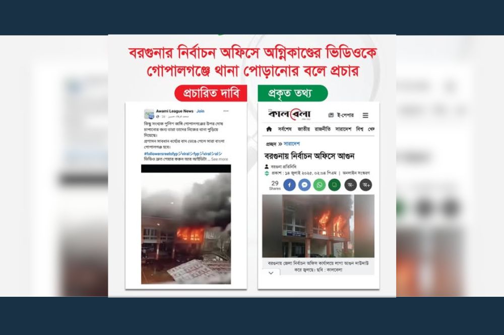 বরগুনার নির্বাচন অফিসে অগ্নিকাণ্ডের ভিডিওকে গোপালগঞ্জে থানা পোড়ানোর বলে প্রচার
