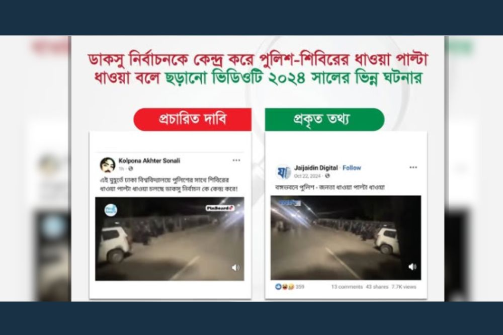ডাকসু নির্বাচনকে কেন্দ্র করে পুলিশ-শিবিরের ধাওয়া পাল্টা ধাওয়া বলে ছড়ানো ভিডিওটি ২০২৪ সালের ভিন্ন ঘটনার